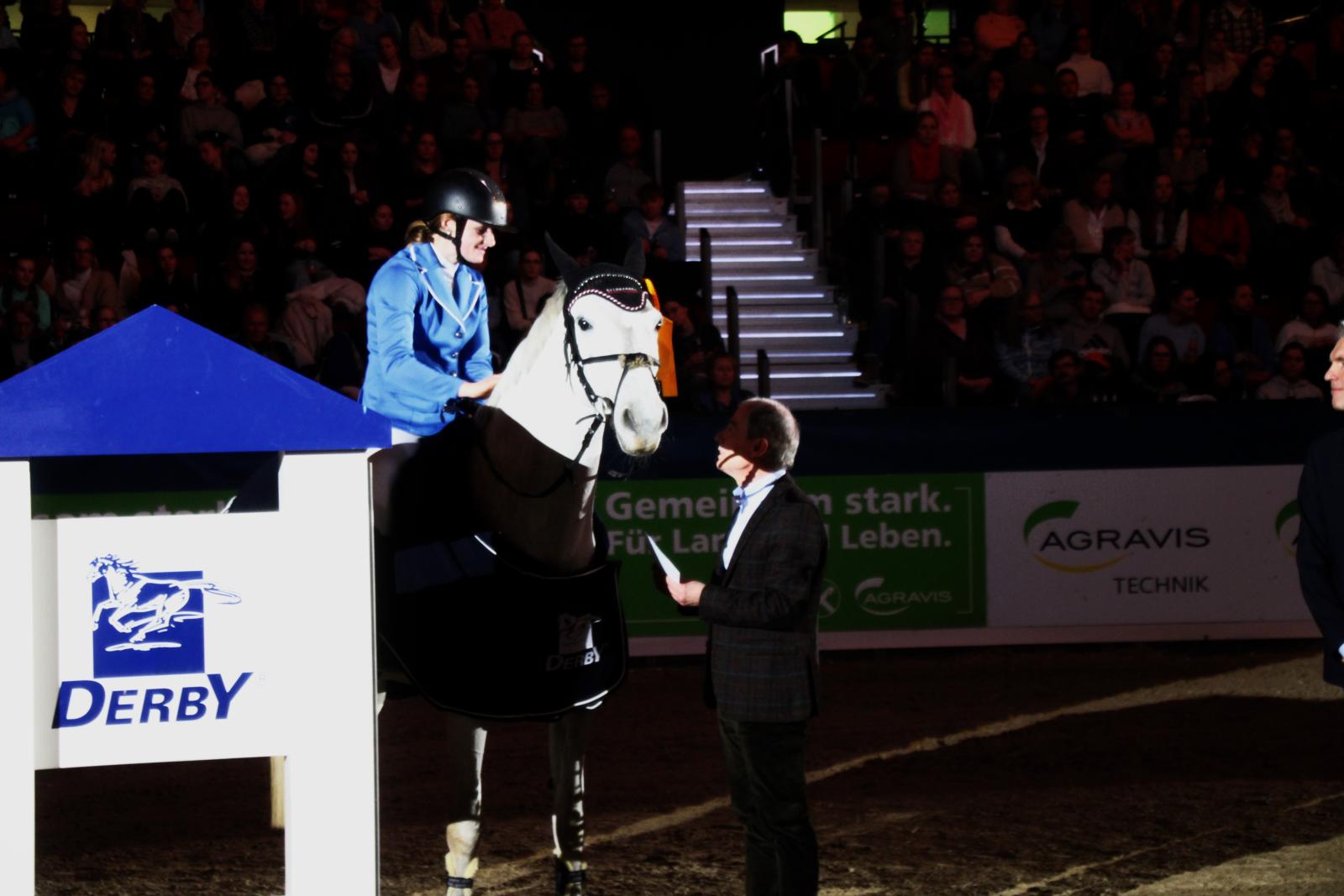 Unter 60 Sekunden, und zwar genau 58,75 Sekunden, schaffte es auch Andres Vereecke auf Call me de Muze Z ins Ziel. Platz zwei für den Belgier und seine zwölfjährige Clarissimo Z-Tochter. Platz drei behauptete ebenfalls eine junge Amazone für sich: Stephi de Boer vom RV Vechta, die einen eigenen Ausbildungsstall im niedersächsischen Dötlingen betreibt, hatte für den Derby Pferdefutter Preis ihre neunjährige Hannoveraner-Stute Querida von Qualito I gesattelt. Das Paar beendete den Parcours aus 13 Sprüngen in 60,49 Sekunden.